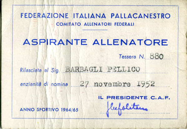 La pallacanestro negli anni ’50 è una disciplina sportiva praticata solo nelle grandi città. Ma per Sansepolcro diventa realtà anche nelle scuole dove il Professore svolge la sua attività didattica. Ma proprio la scuola diventa il primo ostacolo da superare. Per aver introdotto questa disciplina nei programmi scolastici di quegli anni, il Provveditorato agli Studi invia una nota ufficiale in cui si invita il Professor Barbagli a rivedere i suoi programmi e togliere la pallacanestro dal piano di studi annuale. Naturalmente il Professore va avanti per la sua strada. Inizia così ufficialmente a delinearsi quella figura di innovatore educatore rivoluzionario che lo porterà a esplorare sempre nuovi territori; oltre il calcio e la pallacanestro, l’atletica leggera, la ginnastica artistica, la ginnastica correttiva, la scherma, il nuoto, il pugilato, i giochi di bandiera e il lungo lavoro di riabilitazione motoria che dagli anni 60 intraprende con i ragazzi diversamente abili.